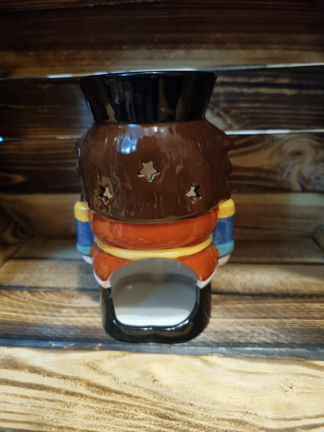 This charming nutcracker shaped ceramic burner is perfect for the season.